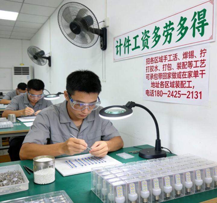 实体企业工厂订单,帶回家做材料免费。货源稳定长期有活,主要负责装配、拧螺丝、打胶、上锡、包装等工艺。